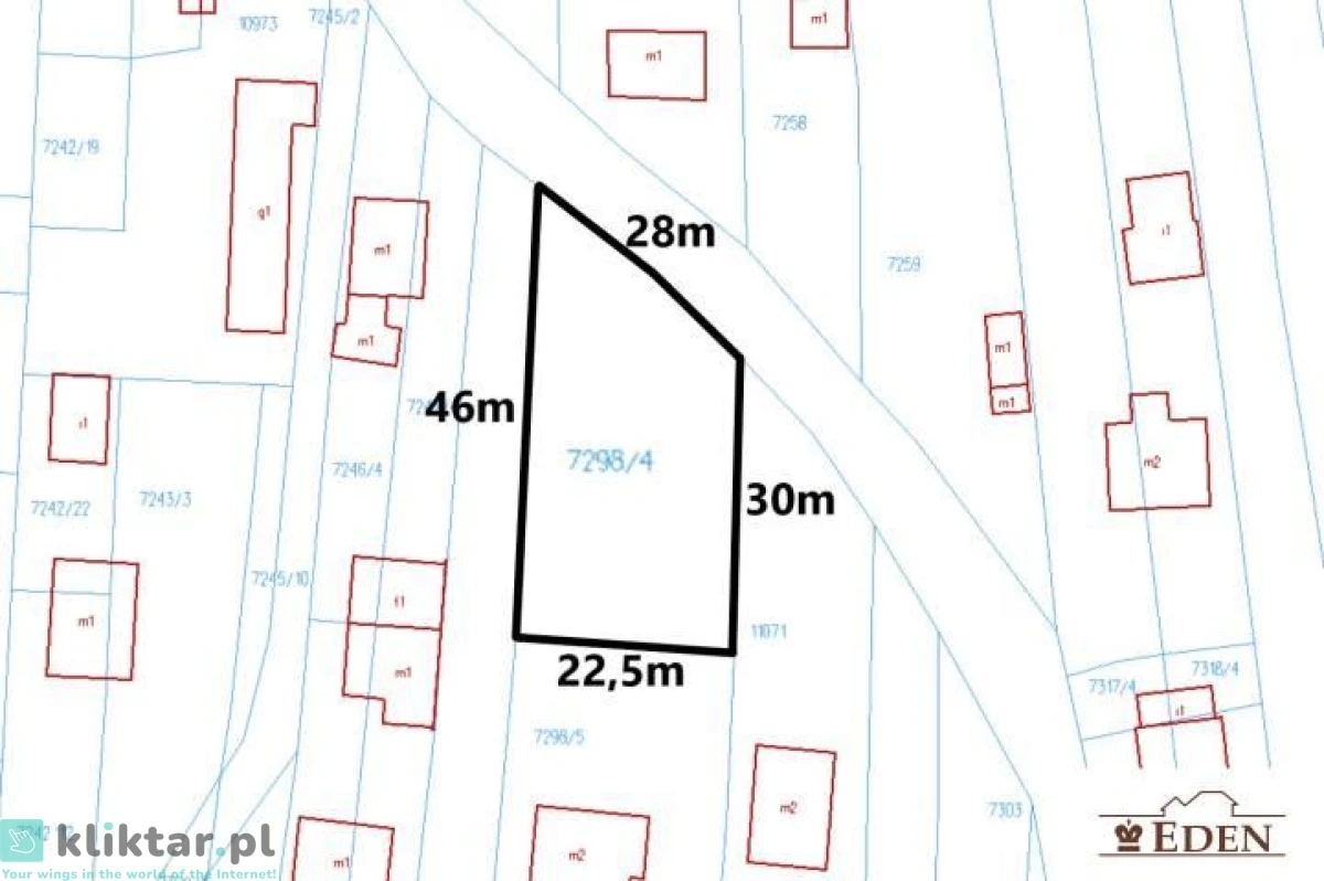 Warto zaznaczyć, że za oferowaną działką znajduje się zabudowana posesja, do której będzie nowy dojazd, droga poprowadzona przez sąsiednią działkę po prawej stronie (nr 7248/4), co nie wpływa na funkcjonalność ani walory użytkowe prezentowanej nieruchomości.