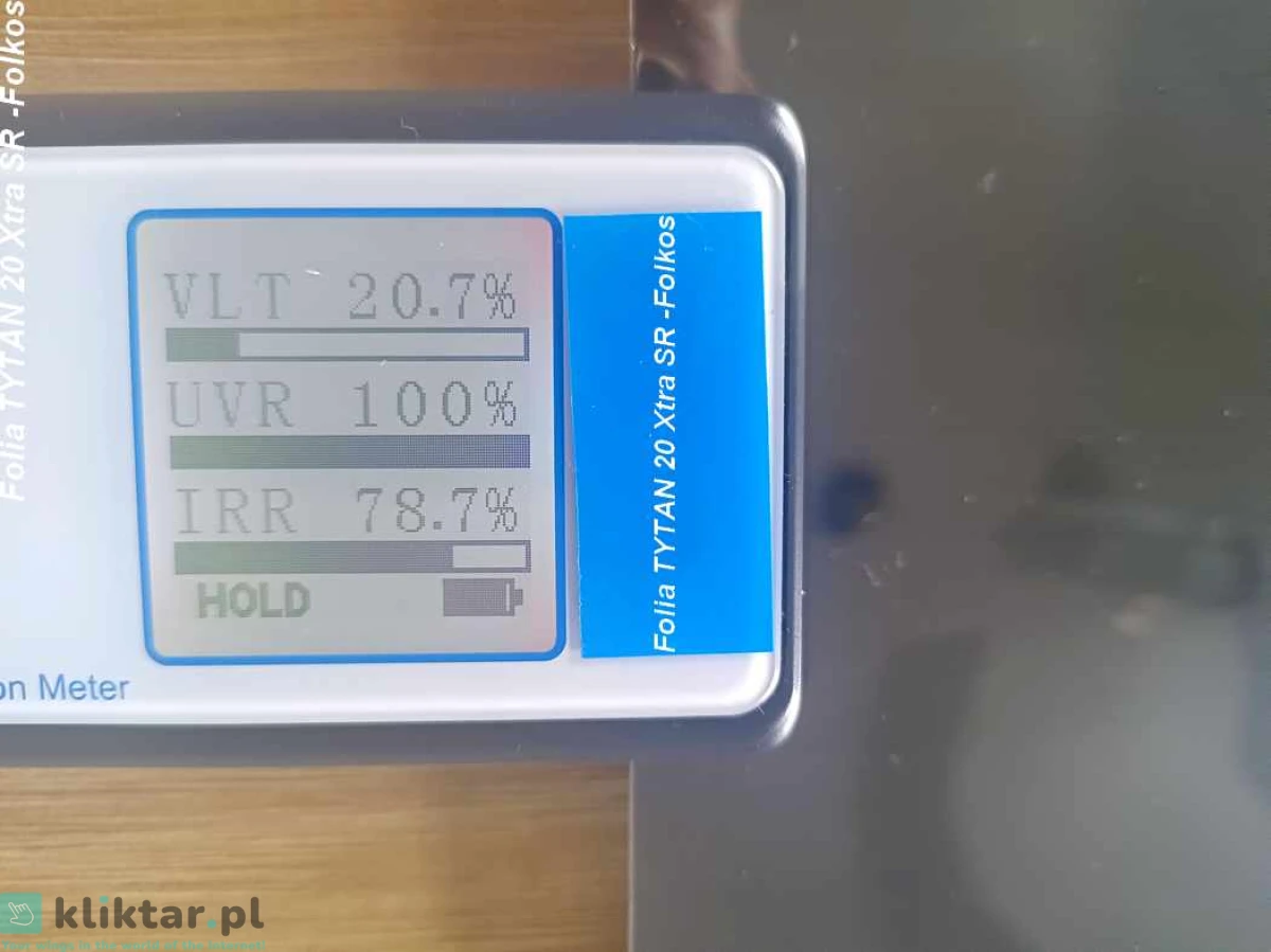 TYTAN 20 Xtra SR - całkowita redukcja promieni słonecznych 80 % , reukcja promieni UV 99%, przepuszczalność światła widzialnego 21%. redukcja rażenia słonecznego 81%, odrzucenie promieni podczerwonych IR 78% ( HANITA )