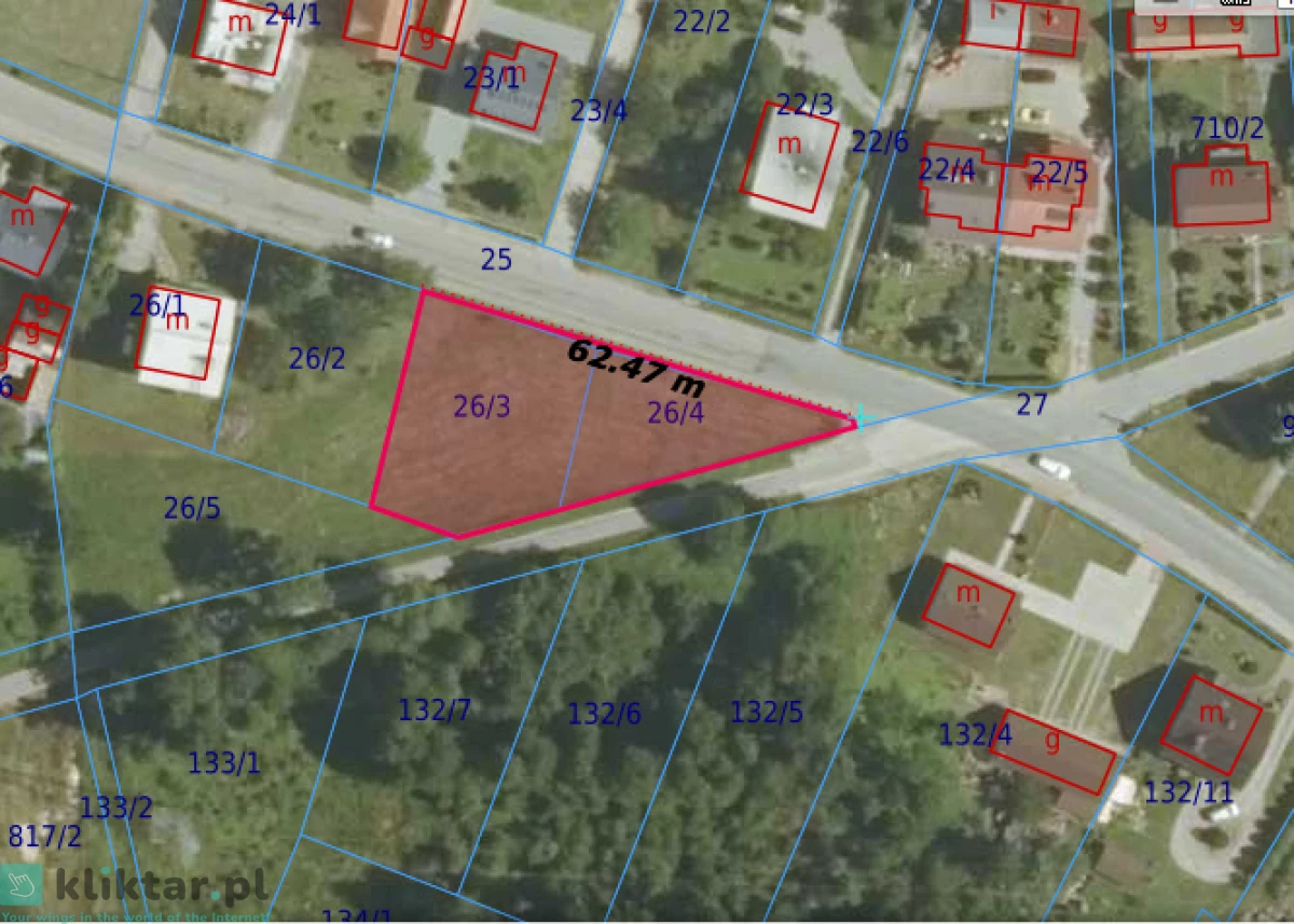 szerokośc działki ok.63m, dogodna pod zabudowę, wjazd możliwy z obu stron.
