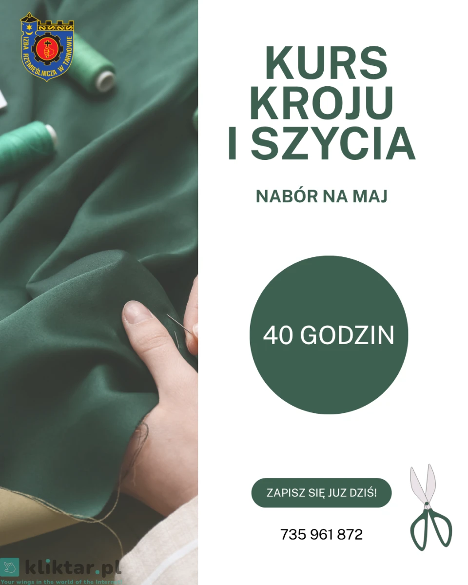 Izba Rzemieślnicza w Tarnowie organizuje kurs kroju i szycia obejmujący 40 godzin zajęć praktycznych. Szkolenie przeznaczone jest dla osób, które chcą nauczyć się podstaw szycia oraz samodzielnego tworzenia prostych elementów odzieży i dodatków.