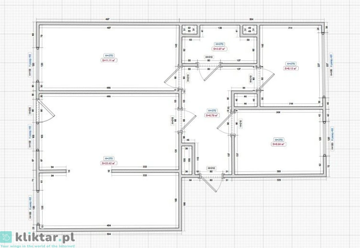 - Układ: 4 pokoje + kuchnia + łazienka + WC + korytarz