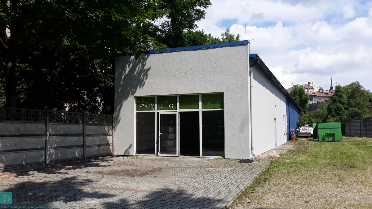 Od frontu murowana część handlowa o pow.120m2, z tyłu dodatkowa pow. handlowo-magazynowa o pow.155m2 z bramą garażową.