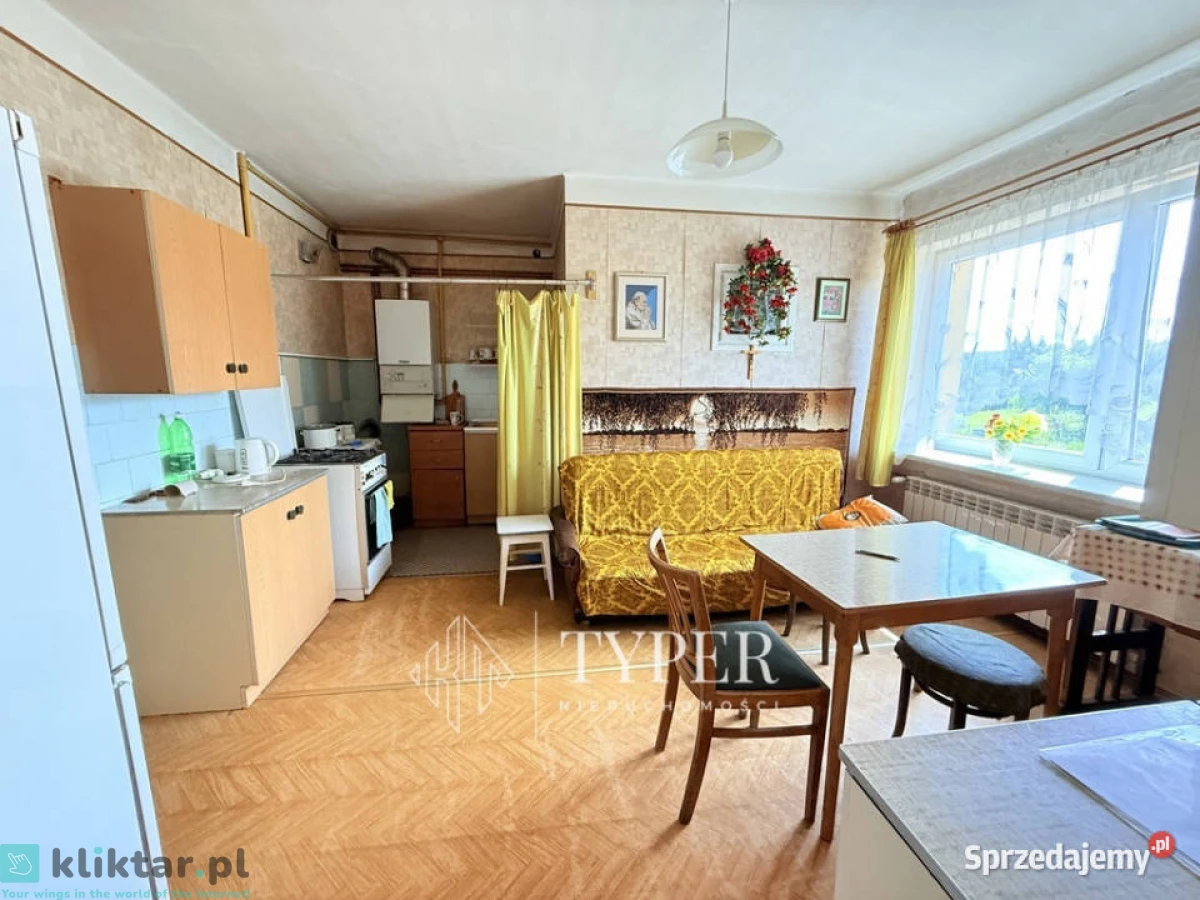 Mam 142 m² i 5 pokoi, które czekają na nowego właściciela z pomysłem. Wnętrze wymaga remontu, ale z zewnątrz jestem już ocieplony i kryty dachówką – solidnie przygotowany na kolejne lata. Jestem praktyczny – mam garaż w bryle, dostęp do wody, kanalizacji i drogi asfaltowej. Ogrzewanie? Piec gazowy, więc komfort cieplny masz pod ręką.
