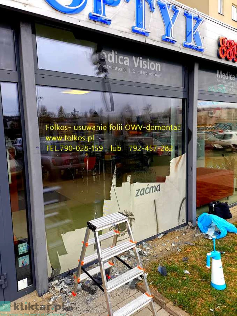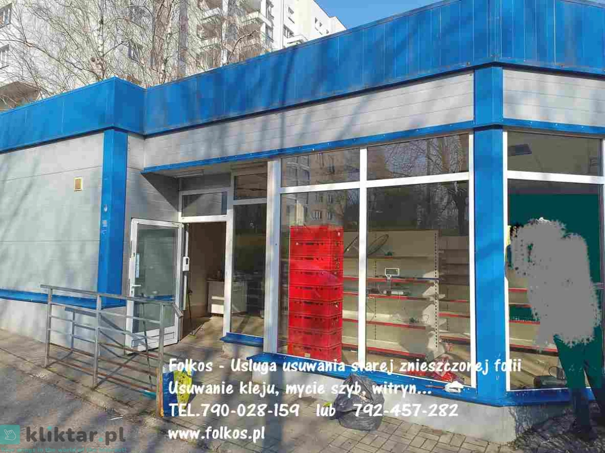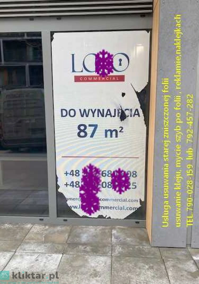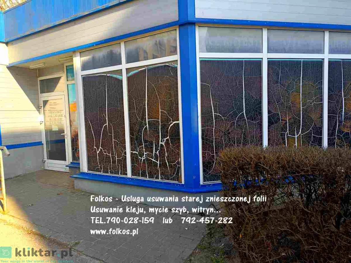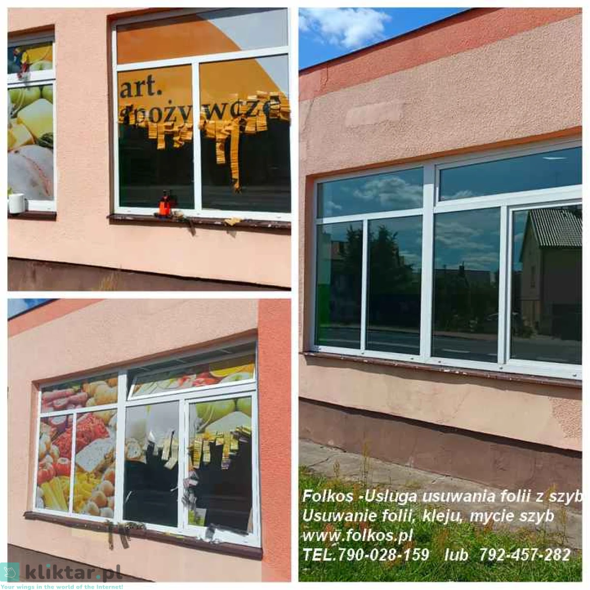 Demontaż starych reklam - starej folii z szyb,usuwanie folii z witryn sklepowych - mycie szyb, usuwanie kleju, naklejek.
