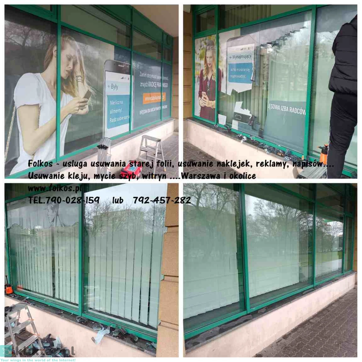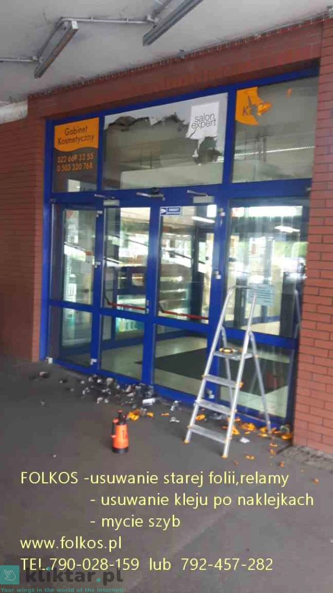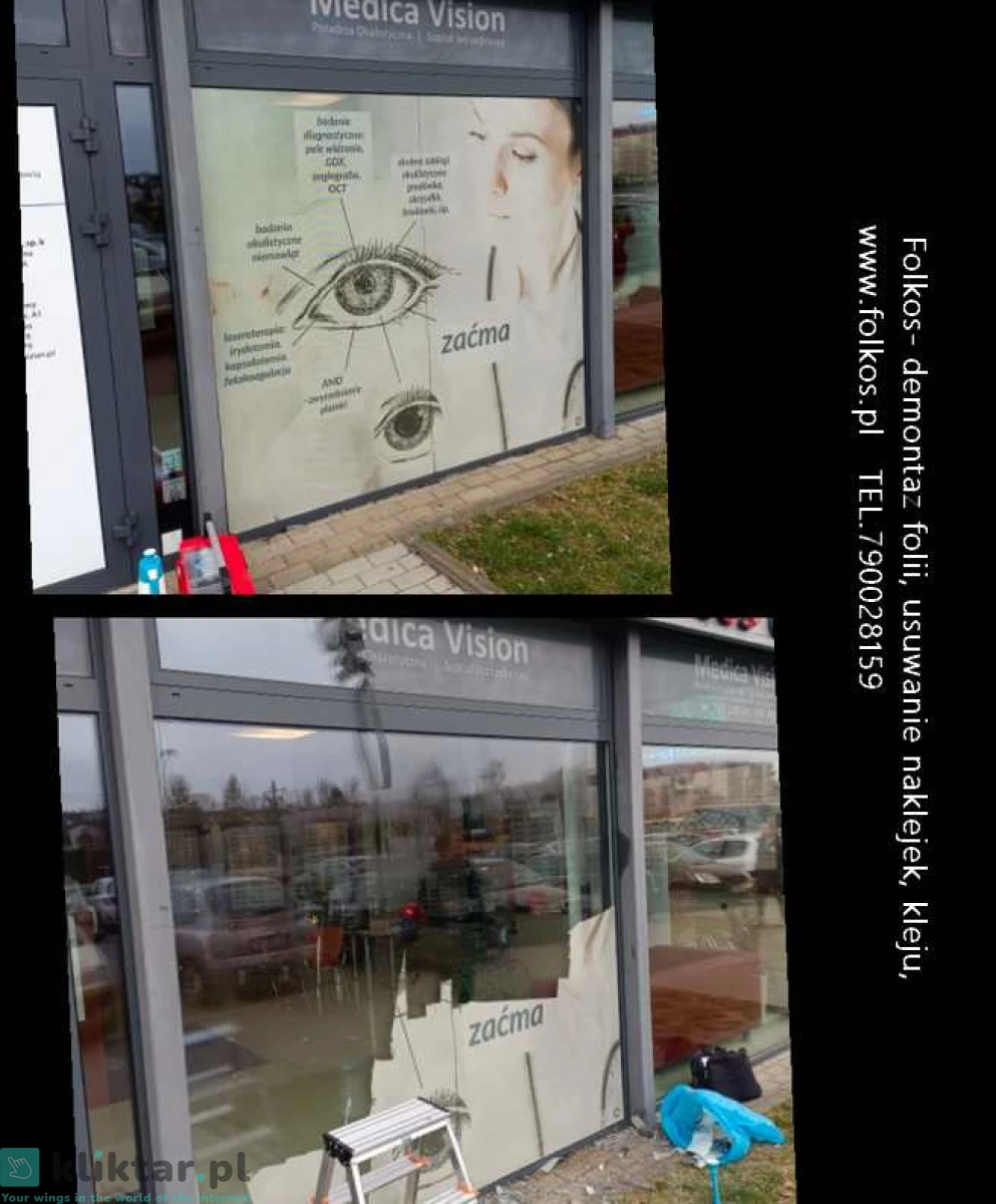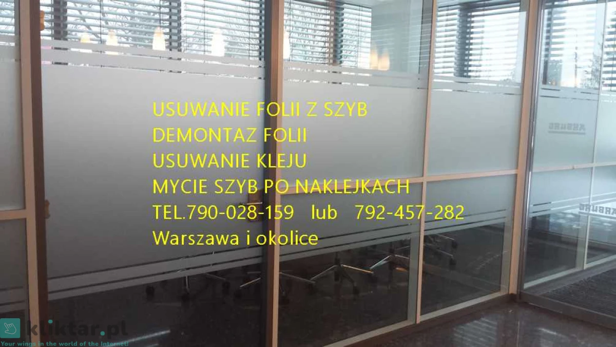 Świadczymy usługę -usuwania, zrywania folii z szyb, witryn, przeszkleń biurowych, wymiany starej zniszczonej folii na nową ...Warszawa i okolice .