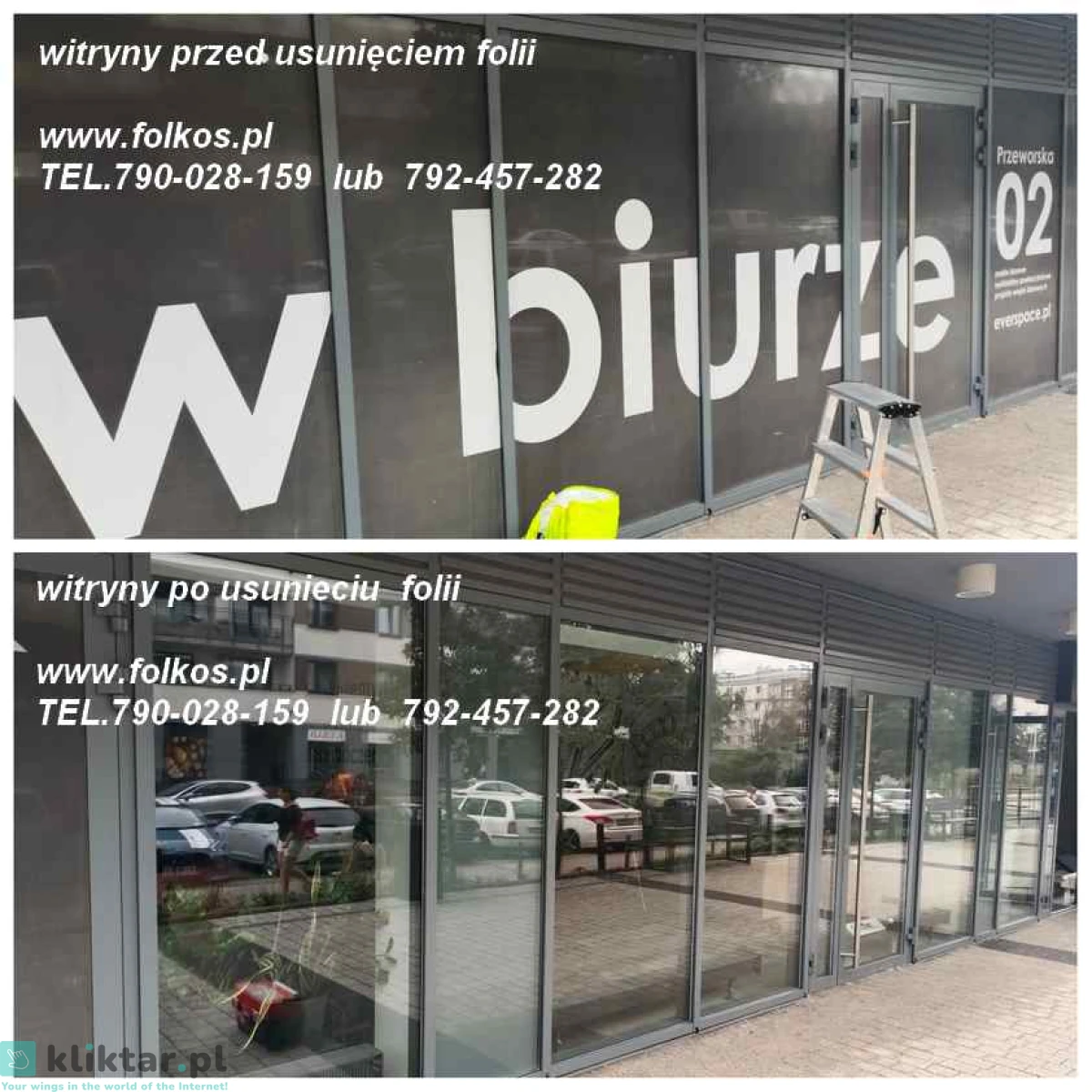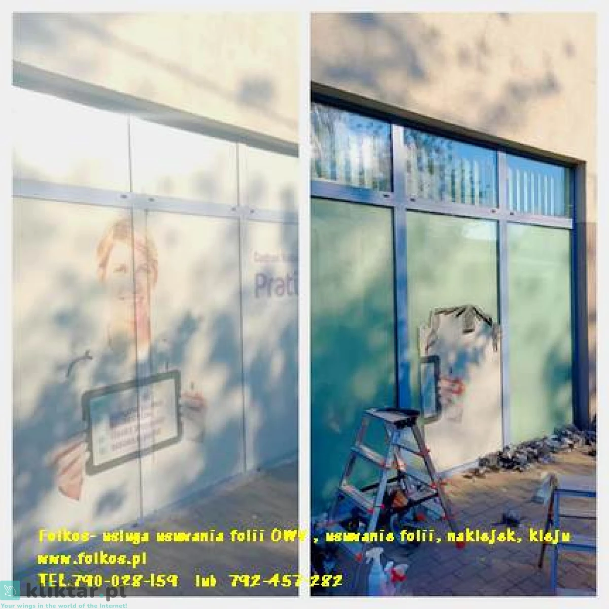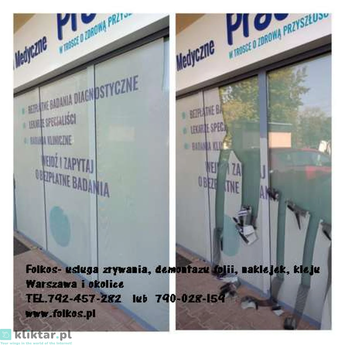 Świadczymy usługę -usuwania, zrywania folii z szyb, witryn, przeszkleń biurowych, wymiany starej zniszczonej folii na nową ...Warszawa i okolice .