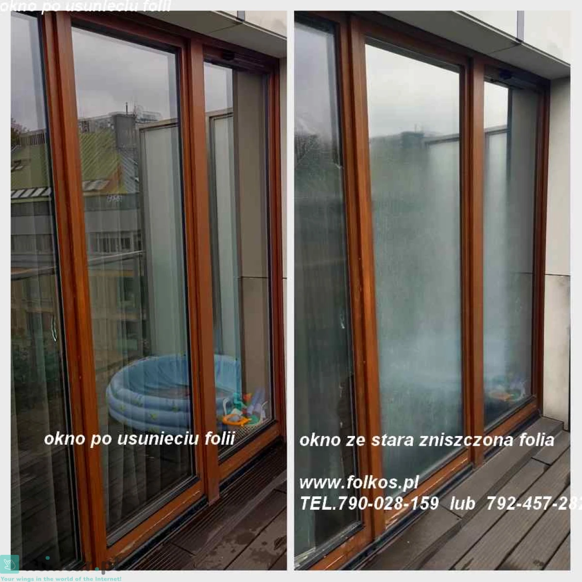 - zdjęcia okien z folią