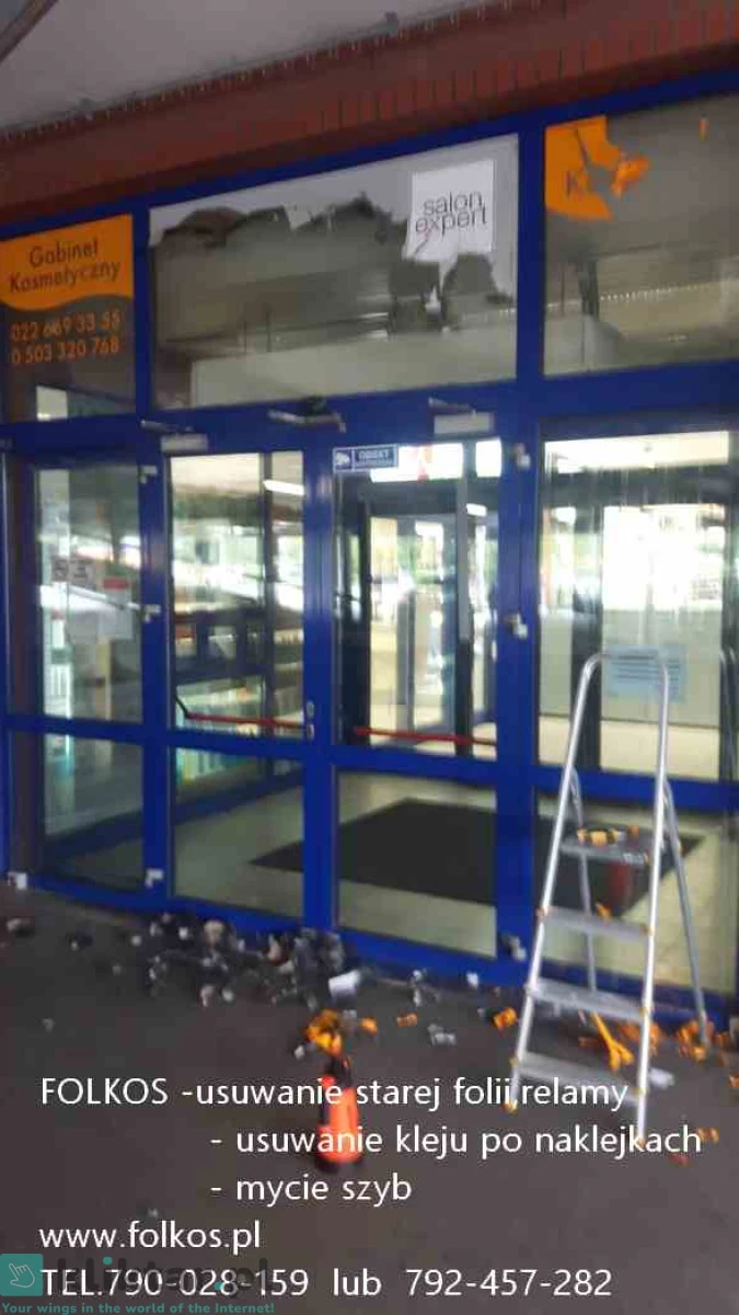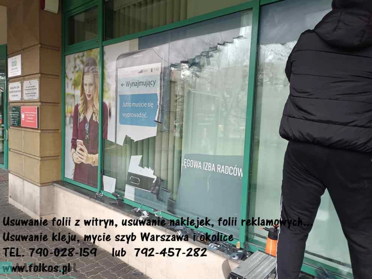 Świadczymy usługę -usuwania, zrywania folii, naklejek... z szyb, witryn, przeszkleń biurowych, wymiana starej zniszczonej folii na nową ...Warszawa i okolice .