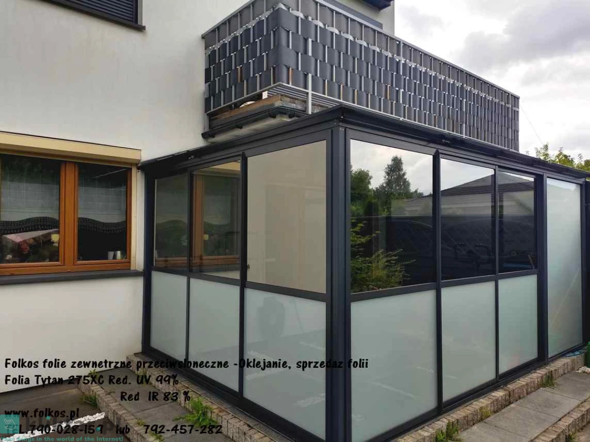 Folia przeciwsłoneczna w 100% zaciemniająca -występuje w 2-ch wersjach lustro-biały mat oraz lustro czarny mat -redukcja UV99%, redukcja IR 99%, redukcja rażenia słonecznego 100%